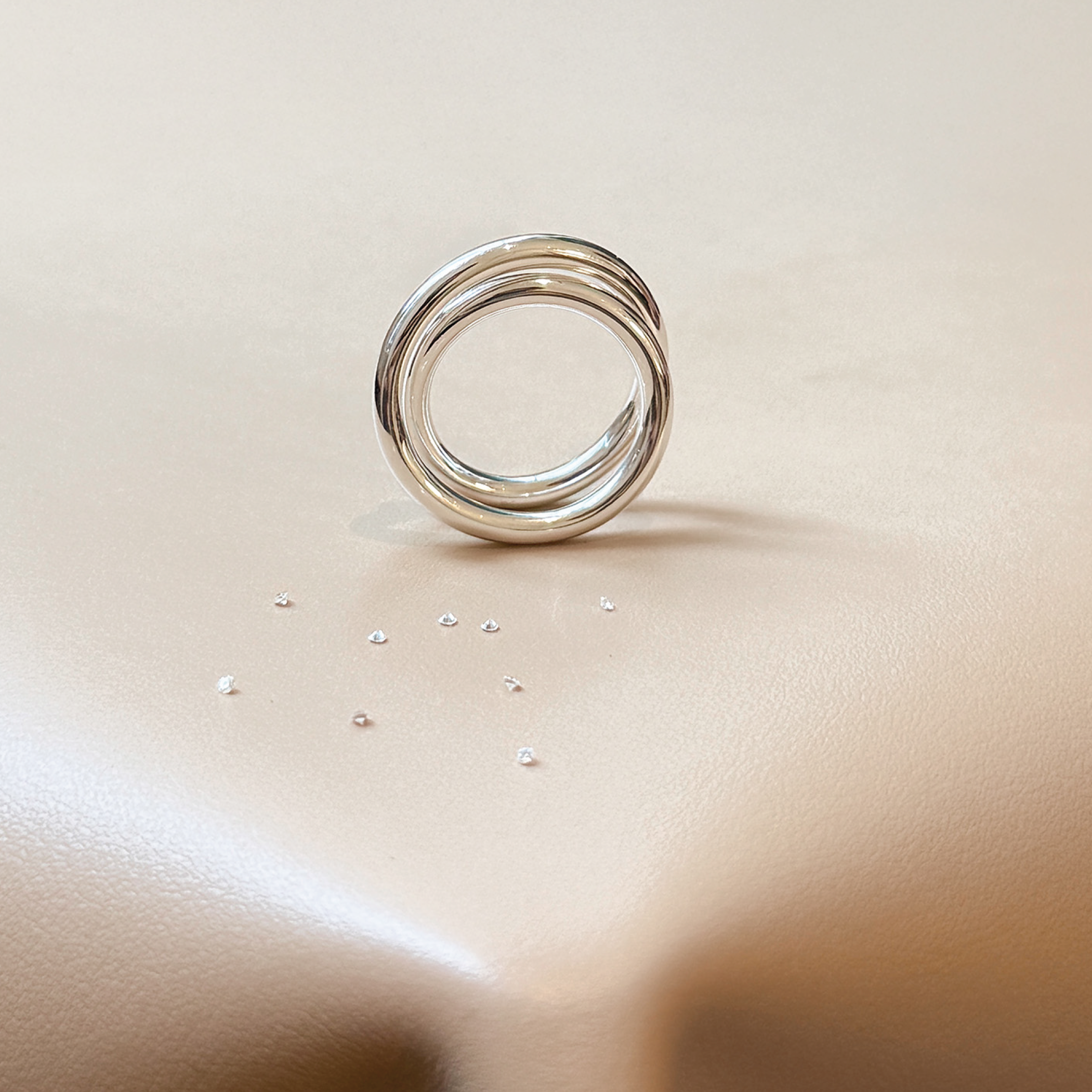 Triple spiral ring in silver and diamonds 3.0