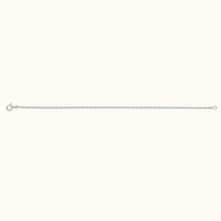 Bracelet chaîne forçat double tour en or blanc 18 carats recyclé de 2,1mm de diamètre.